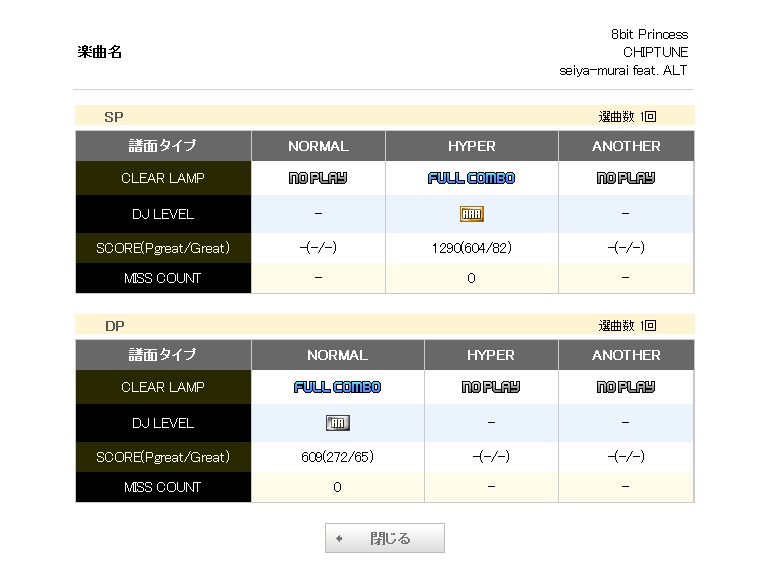 余談ですがSP ゲーセン初AAAは2005年 7月に☆3「EMPTY OF THE SKY」で取りました。