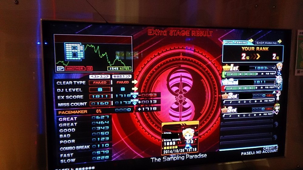 新曲な為、EX譜面プレイに必要なオーラが足りないという結果になり、諦めました。