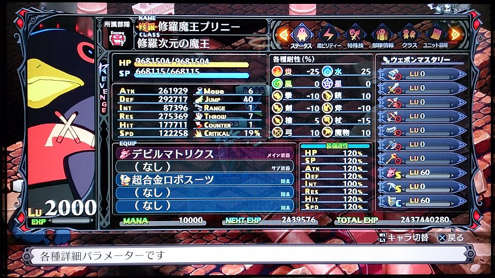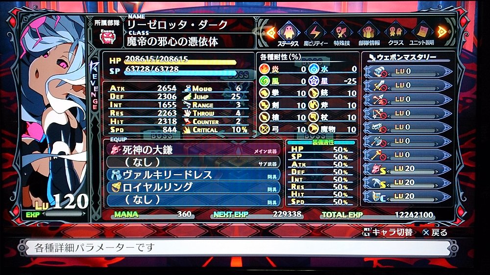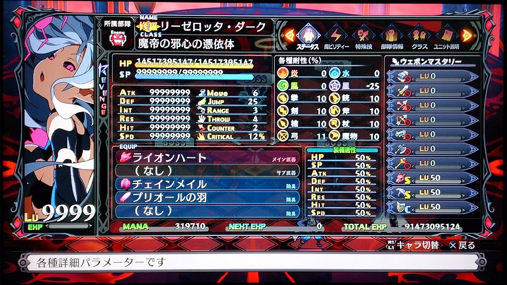 GW中はディスガイア5をずっとプレイしており、現在、修羅次元を攻略するべくキャラを育成中。
